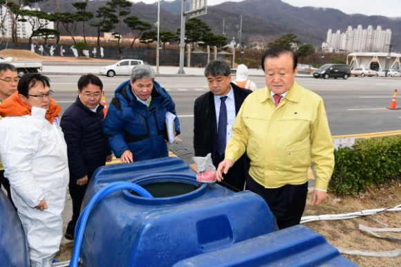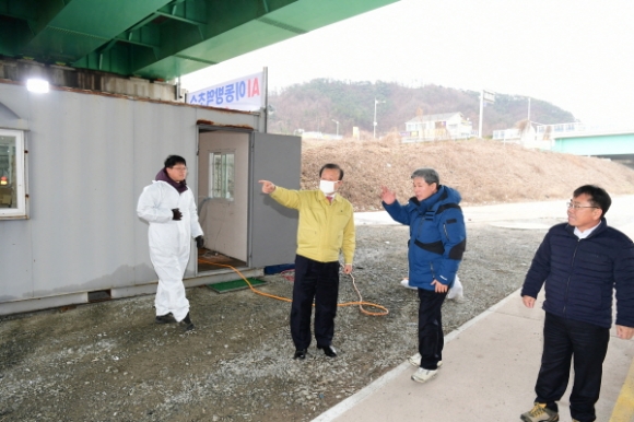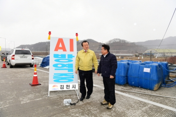AI차단방역에 총력을 기울이고 있는 가운데 박보생 김천시장은 김천IC, 동김천IC 김천가축시장내 거점소독시설, 지좌동 1046 감천일대에서 운영되고 있는 가축방역초소 및 이동통제소를 방문하여 관계자들을 격려하고 AI방역에 한치의 오차도 없이 만전을 기해달라고 주문하였다.