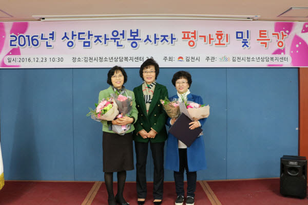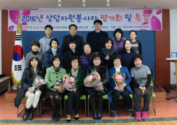 김천시(시장 박보생)는 지난 23일 청소년들의 고민과 진로 등 그들만이 가지고 있는 어려움을 상담해주어 밝은 미래로 이끌어 준 청소년상담자원봉사자(이하 봉사자)들이 한자리에 모여 한 해 동안의 실적과 다가올 2017년도의 계획을 논의하기 위한 봉사자 평가회를 청소년상담복지센터 회의실에서 개최하였다.