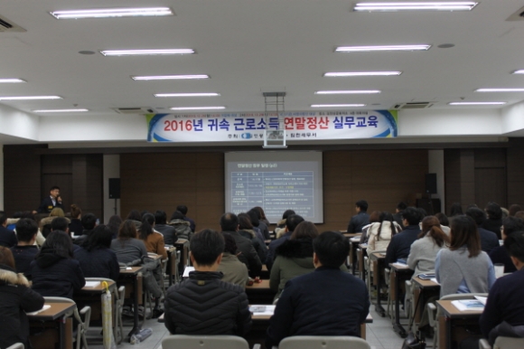 관내 기업체의 회계·경리담당자 100여명이 참석한 가운데 열린 이날 교육은 2016년 귀속 근로소득의 연말정산시 필요한 신고방법과 개정된 법령 등에 대해 설명함으로써 연말정산에 도움을 주고자 실시됐다.