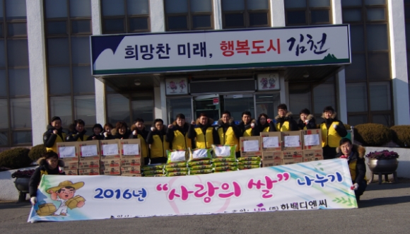 ㈜한백디엔씨(대표이사 조재봉)는 지난 12월 29일(목) 연말연시를 맞아 관내 저소득 계층에게 222만원 상당의 백미(10kg)와 라면을 전달했다.
