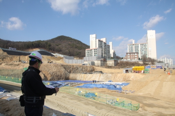 신축공사현장에서 김순구(50) 현장소장 외 16명의 직원들이 근무를 하고 있는 (주)삼도건설 뷰엔빌 아파트는 지난해 9월 모델하우스를 공개하고 기초공사가 한창 진행 중에 있으며 토석을 운반하는 덤프 차량들이 쉴 새 없이 드나들고 있다. 그런데도 공사현장 출입구에는 세륜 시설이 설치되어 운반차량의 타이어에 흙을 세척하여 시청대로에 흙 한 톨 떨어져 있는 것이 없다.