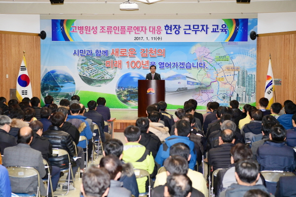 김천시(시장 박보생)는 경북을 제외한 전국이 고병원성 AI 바이러스 확산에 따른 시민 불안감이 커지고 있는 가운데 AI 바이러스 감염에 대비하여 현장 투입 예정공무원 400명을 대상으로 김천시청 3층 대강당에서 교육을 실시했다.