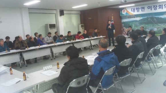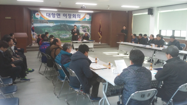 | 특히 첫 이장회의에서는 신임이장 3명과 연임이장 4명에게 임장을 수여하고 마을의 일꾼이자 봉사자인 이장들이 솔선수범으로 지역의 발전과 주민 화합을 위해 노력할 것을 다짐했다. 김영환 대항면장은 “지난 한 해 대항면 발전을 위해 봉사와 헌신을 아끼지 않은 이장님들께 감사의 말씀을 전한다. 2017년에도 그동안의 경험을 바탕으로 지역민들의 협력과 화합을 유도하여 면행정의 발전에 앞장 서 주시기 바란다.”고 말했다.