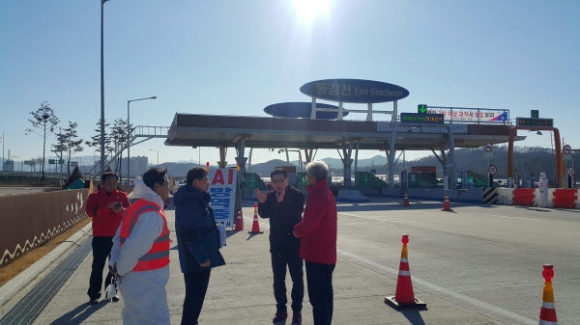 이날 이철우 국회의원은 거점소독장소(1개소, 김천 양천동 우시장) 및 이동통제초소(2개소, 김천IC, 동김천IC)를 직접 방문하여, 추운날씨에도 불구하고 방역활동에 힘쓰고 있는 방역근무자들을 격려하였다.