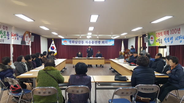 자유총연맹 김천지부 평화남산동 분회(분회장 문영인)와 자유총연맹 평화남산동 여성회(회장 김양숙)는 1월 18일 오전 11시 2017년 1월 월례회를 열어 회원 상호간에 신년인사를 나누고, 정유년에도 자유민주주의 수호를 위한 이념 전파와 지역사회에 대한 봉사에 힘을 쏟을 것을 결의하였다.
