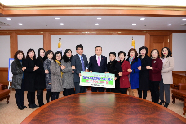 김천의 교육발전과 글로벌 인재육성을 위해 김천시어린이집연합회(회장 김만배)에서 김천시인재양성재단(이사장 박보생)에 장학기금 이백만원을 기탁했다.