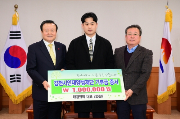 김천의 교육발전과 글로벌 인재육성을 위해 대경화학(대표 김정년)에서 김천시인재양성재단(이사장 박보생)에 장학기금 일백만원을 기탁했다.