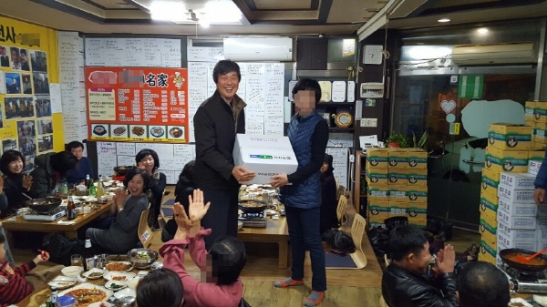 | 보안협력위원들이 마련한 세송이버섯, 떡국용 떡, 명절 선물세트, 건강음료 등을 전달하면서 만찬을 통한 외롭게 설을 맞이하는 탈북민을 위로 하는 시간을 가졌다.