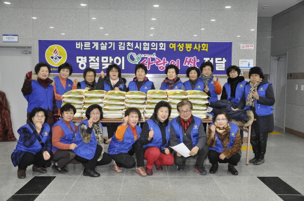 바르게살기운동 김천시협의회 여성봉사회(회장 이숙희)는 지난 23일 문화회관에서 어려운 이웃에게“명절맞이 사랑의 쌀”을 전달했다.
