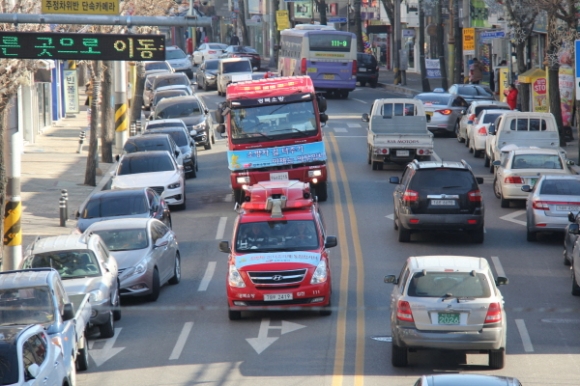 이번 훈련은 소방차량 3대와 김천시 교통단속 차량1대가 동원되어 김천소방서에서 출발하여 김천역과 시민탑을 경유하여 교통량이 많고 혼잡한 상습 차량정체구간에서 실시되었다.