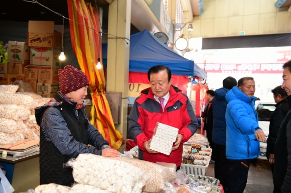 박보생 김천시장은 1월 26일 전통시장인 평화시장과 황금시장을 방문하여 온누리 상품권으로 제수용품을 직접 구매하면서 상인들의 어려움을 청취하는 등 어려움을 겪고 있는 상인들을 격려했다.
