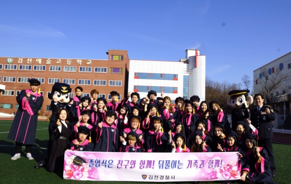 김천경찰서, 졸업식장 찾아 건전한 뒤풀이 홍보활동 펼쳐