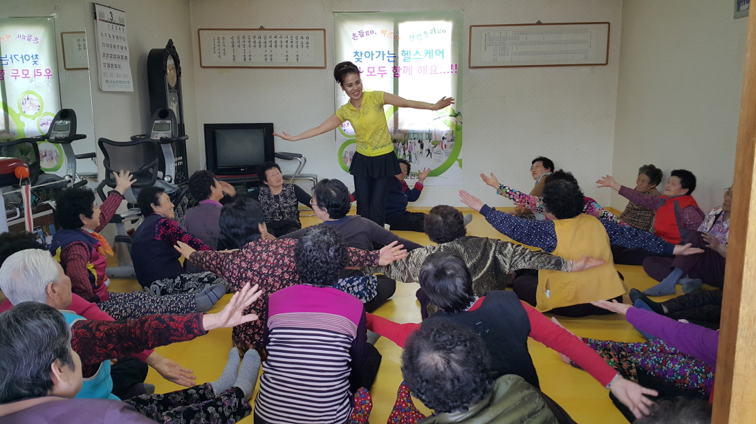 | 찾아가는 헬스케어는 보건지소, 보건진료소 경로당 및 마을회관 57개소를 선정하여 건강체조, 웃음치료, 민요교실 등 전문강사를 초빙하여 매주 1-2회 운영하며, 특히 공중보건의사가 직접 방문하여 혈압 및 당뇨검사, 감기예방, 낙상 및 미끄럼주의와 안전사고 교육 실시하며, 더불어 심뇌혈관질환예방관리 및 구강보건·영양사업 등과 연계하여 다양한 의료서비스를 지원한다.