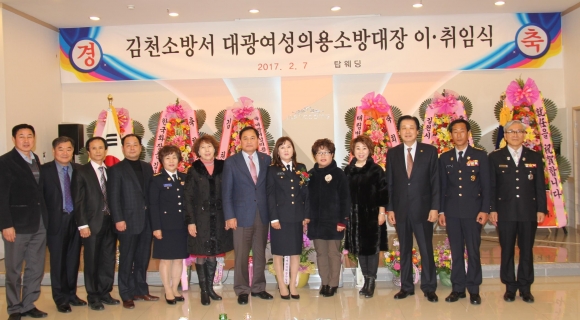 | 김천소방서(서장 백남명) 대광119안전센터에서는 2017년 2월 7일(화) 18시 30분 탑웨딩에서 김응규 경상북도의회 의장, 배낙호 김천시의회 의장, 김진하 김천시 안전재난과장, 이선명 김천시의회 의원, 전계숙 김천시의회 의원, 변성철 대신동장, 새누리당 김천시당원협의회 황상연 사무국장, 양숙자 김천시 여성단체 협의회장, 최대원 고려장학회 이사장, 정정란 한국생활개선 김천시연합회 전임회장, 위상복 남성의용소방대 연합회장, 박세자 여성의용소방대 연합회장 등 10여명의 내빈이 참석한 가운데 대광여성의용소방대장 이·취임식 행사를 개최하였다.