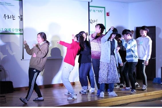 |  | | | ⓒ 김천내일신문 | | 2017년 상록수 장학재단(이사장 이상춘) 김천 수련회가 1월 23일~25일, 경북 청소년 수련원에서 90명의 장학생들이 참석한 가운데 ‘우리는 같이 있고 가치 있다!’라는 주제로 열렸다.