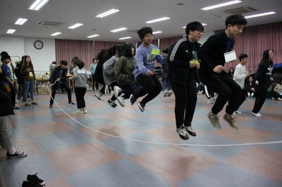 “올림픽” 올림픽은 등 밟기, 꼬리잡기, 단체 줄넘기, 런닝맨 순으로 진행됐다. 상록수 장학생들은 강한 승부욕을 느끼며 열정적인 자세로 경기에 임했다. 학생들은 체육 활동을 통하여 친목도모를 하고 협동심과 인내심을 키우는 시간을 가졌다.