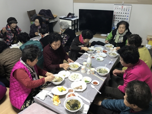 자산동 청년협의회, 경로당 이용 어르신들께 떡국 대접
