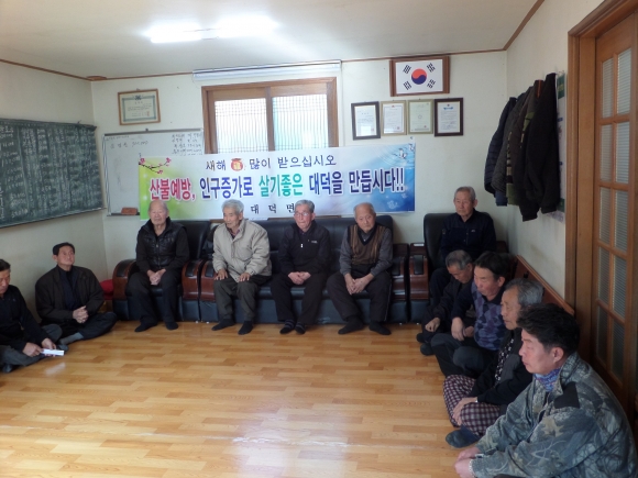 | 대덕면장은 새해인사와 함께 봄철 산불예방, 가축질병 예방과 주요사업에 대해 홍보하고 어르신들의 애로사항과 건의사항 등을 듣는 시간을 가졌다. 파출소장은 교통사고 예방 및 보이스피싱 예방법을 정태희 조합장은 조합운영에 대해 설명하는 시간을 가졌다.