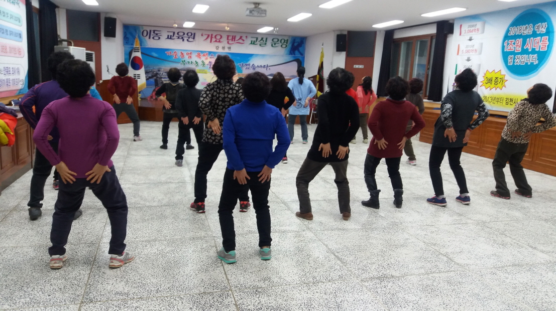 | 대중적인 음악과 춤을 함께하는 가요댄스는 흥미와 재미가 있고 남녀노소 누구나 쉽게 따라 할 수 있을 뿐만 아니라 육체적, 정신적 피로를 한 번에 풀어 줌으로써 많은 주민들이 참여하고 있다.