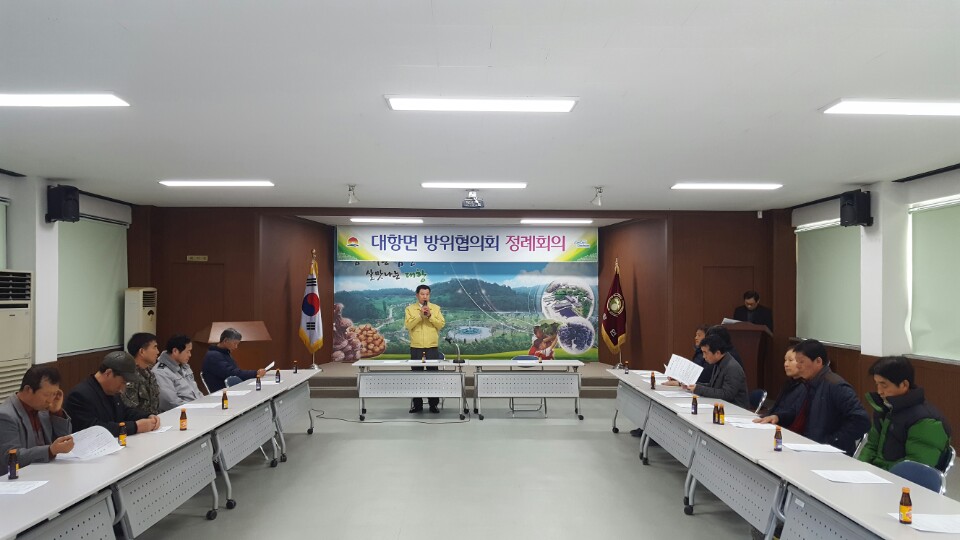 2월 15일 대항면 회의실에서 열린 정례회의는 김영환 대항면장, 박세환 직지파출소장, 정원철 예비군면대장 등 25명이 참석한 가운데 2016년 결산보고 및 신임회장 선출, 2017년 신규사업계획 등에 대하여 논의가 이루어졌다.