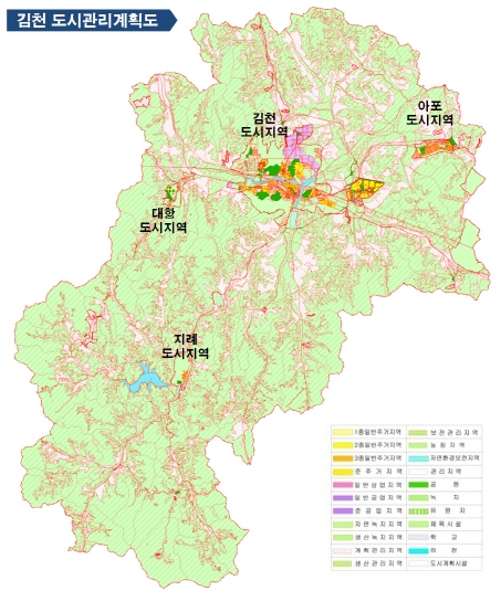 ‘김천시 도시관리계획 재정비’는 매 5년마다 시․군의 행정구역 전체에 대한 도시관리계획을 전반적으로 재검토하고 정비토록 하고 있는 국토계획법에 따라 2020년을 목표연도로 김천시 관내 발전 구상과 함께 장기미집행 도시계획시설 중 우선해제대상 시설을 조기에 해제하는 내용을 담아 입안됐다.