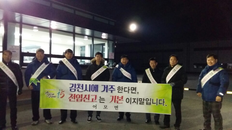 | 어모면(면장 이정하)에서는 김천시 주요 역점시책인 인구 15만 회복을 위하여 2월 한 달을 전입홍보 중점추진 기간으로 정하고 인구회복운동을 적극 추진하고 있다. 어모면에서는 22일 오전 6시 이른 새벽부터 관내기업체 「KCC」회사를 방문, 출근하는 직원들에게 김천시주소갖기 캠페인을 실시하였다.