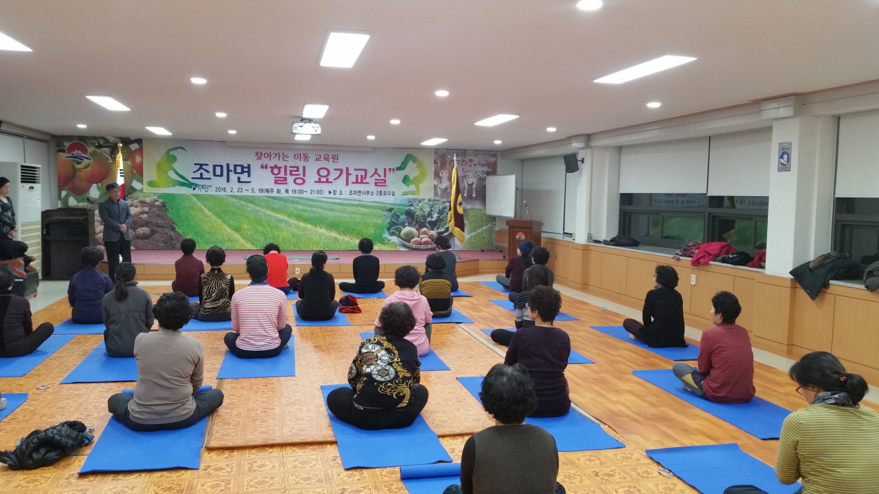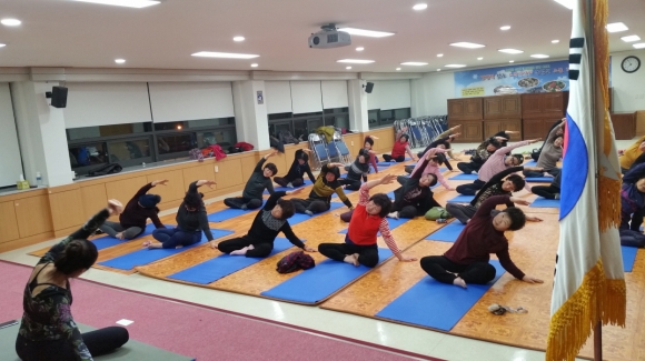 이 날 개강한 요가교실은 평소 취미생활을 접하기 어려운 지역민에게 여가선용과 행복한 삶을 선사하기 위해 마련된 프로그램으로 주민들이 희망하는 강좌를 사전에 조사하여 주민 만족도와 참여도가 높았다. 2월 23일 개강한 힐링 요가교실은 5월 18일까지 주2회(화 ․ 목요일) 저녁 7시~9시까지 김은주 요가 전문강사를 초빙하여 운영된다.