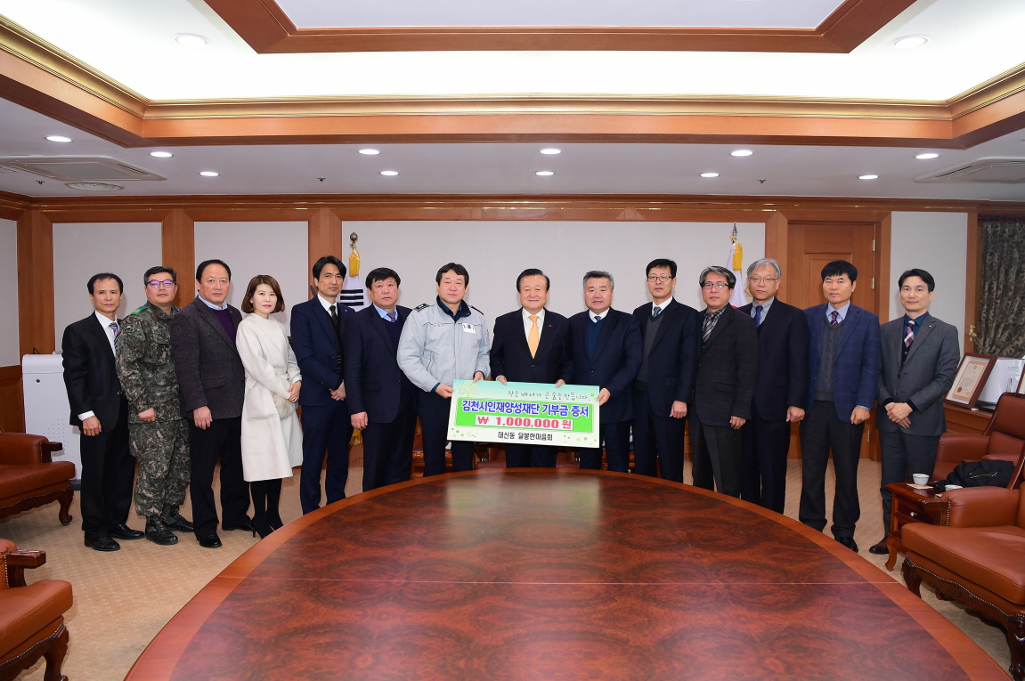 | 김천의 교육발전과 글로벌 인재육성을 위해 대신동 기관장협의회인 달봉한마음회에서 김천시인재양성재단(이사장 박보생)에 장학기금 일백만원을 기탁했다.