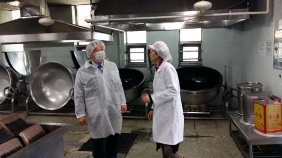 | 경상북도김천교육지원청(교육장 장태덕)은 개학전 학교급식 식중독 발생 우려가 높은 개학전에 안전한 급식 제공을 위하여 장태덕 교육장이 2월 28일(화) 학교 현장을 직접 방문하여 식재료 검수 및 위생․안전관리 실태를 불시에 점검하였다.