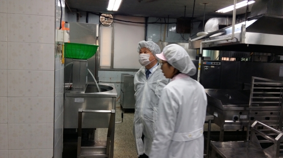 성의고등학교를 방문한 장태덕 교육장은 개학 전 급식시설에 대한 사전 점검을 선제적으로 실시하여 안전한 급식 환경 조성이 필요함에 따라 급식시설·설비, 기구 등 청결상태, 학교급식 식재료의 품질관리기준 적합 여부, 안전사고 예방을 위한 조치사항 등을 확인하였다.