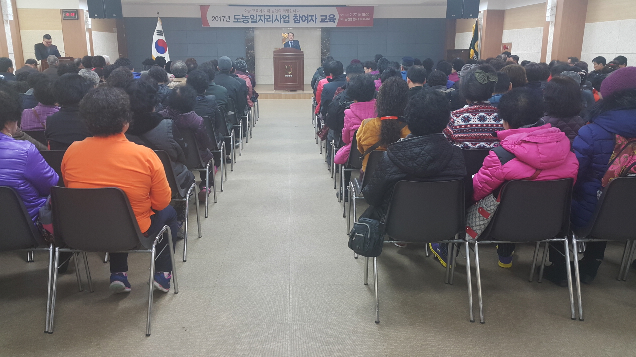| 김천시 도농일자리지원센터(센터장 신성우)에서는 지난 2월 27일(월) 김천농협 4층 회의실에서 김천시 관내 농가주 및 일자리참여자 200명을 대상으로 도농일자리사업 참여자 교육을 실시하였다.