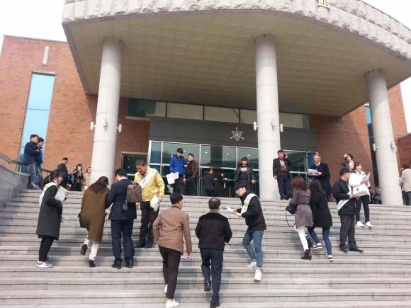 김천고등학교는 올해 신입생 260명 중에 기숙사 학생들이 200여명을 차지할 정도로 타지역의 중학교를 졸업한 학생이 대다수를 차지하는 여러 지역의 인재들이 모인 전국단위 자율형 사립고이다. 따라서 이번 현장전입신고는 타지역 출신의 기숙사 신입생들에게 “김천시 15만 인구회복운동”의 추진 필요성을 홍보함과 동시에 소위 전입지원금이라고 불리는 김천시 인구증가시책 지원금이나 김천시인재양성재단 장학금, 홍제동 행복기숙사 신청 등 특히 학생을 대상으로 하는 김천시의 각종 시책을 홍보하여 학부모들이 전입신고를 하도록 유도하기 위해 추진되었다. 고등학생은 미성년자인 관계로 학생 본인이 전입신고를 할 수 없고 세대주(학부모)가 신고해야 한다. 대곡동주민센터는 앞으로도 학교와의 협조아래 교내 체육대회 등 학부모와 학생이 함께 모이는 학교 행사시에 학교를 방문하여 기숙사생들을 대상으로 현장전입반을 지속적으로 운영할 예정이며, 김천고등학교를 시작으로 관내 김천대학교 우방아파트 기숙사와 KT&G 주요 기관의 사택을 현장 방문하여 사실조사와 더불어 찾아가는 전입홍보활동을 지속적으로 펼칠 예정이다. |