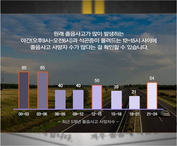 고속도로 졸음사고 치사율, 과속사고의 2.4배...봄철에 급증!!