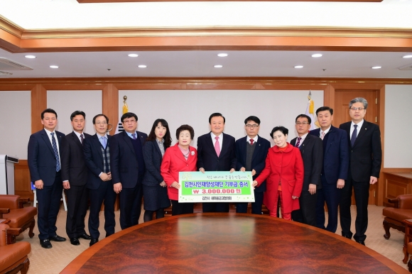 | 김천의 교육발전과 글로벌 인재육성을 위해 김천시 새마을금고협의회에서 김천시인재양성재단(이사장 박보생)에 장학기금 삼백만원을 기탁했다.