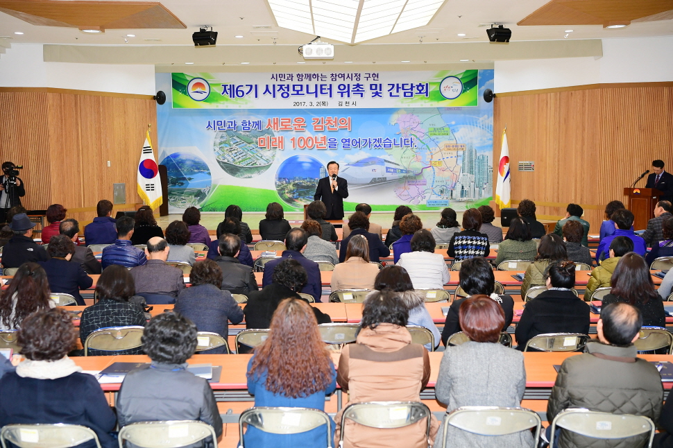 | 김천시는 지난 2일 시청 3층 강당에서 시정모니터 100명이 모인 가운데 ‘제6기 시정모니터 위촉식’을 개최하였다.