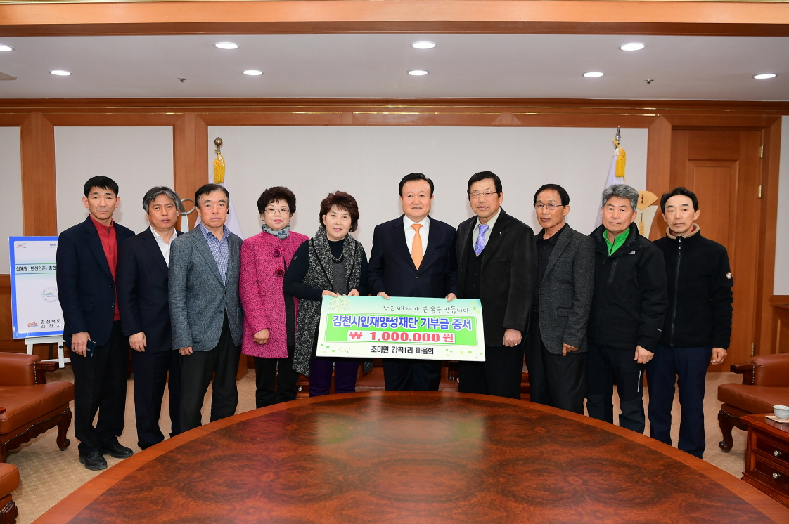 | 김천의 교육발전과 글로벌 인재육성을 위해 조마면 강곡1리 마을회에서 김천시인재양성재단(이사장 박보생)에 장학기금 일백만원을 기탁했다.