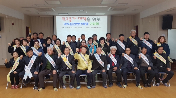 | 아포읍(읍장 이호길)에서는 “김천시 인구 15만 회복운동” 과 연계하여 아포읍 인구 2만명 달성을 위한 관변단체들과의 간담회를 2일 아포종합복지관 2층 강당에서 개최하였다.