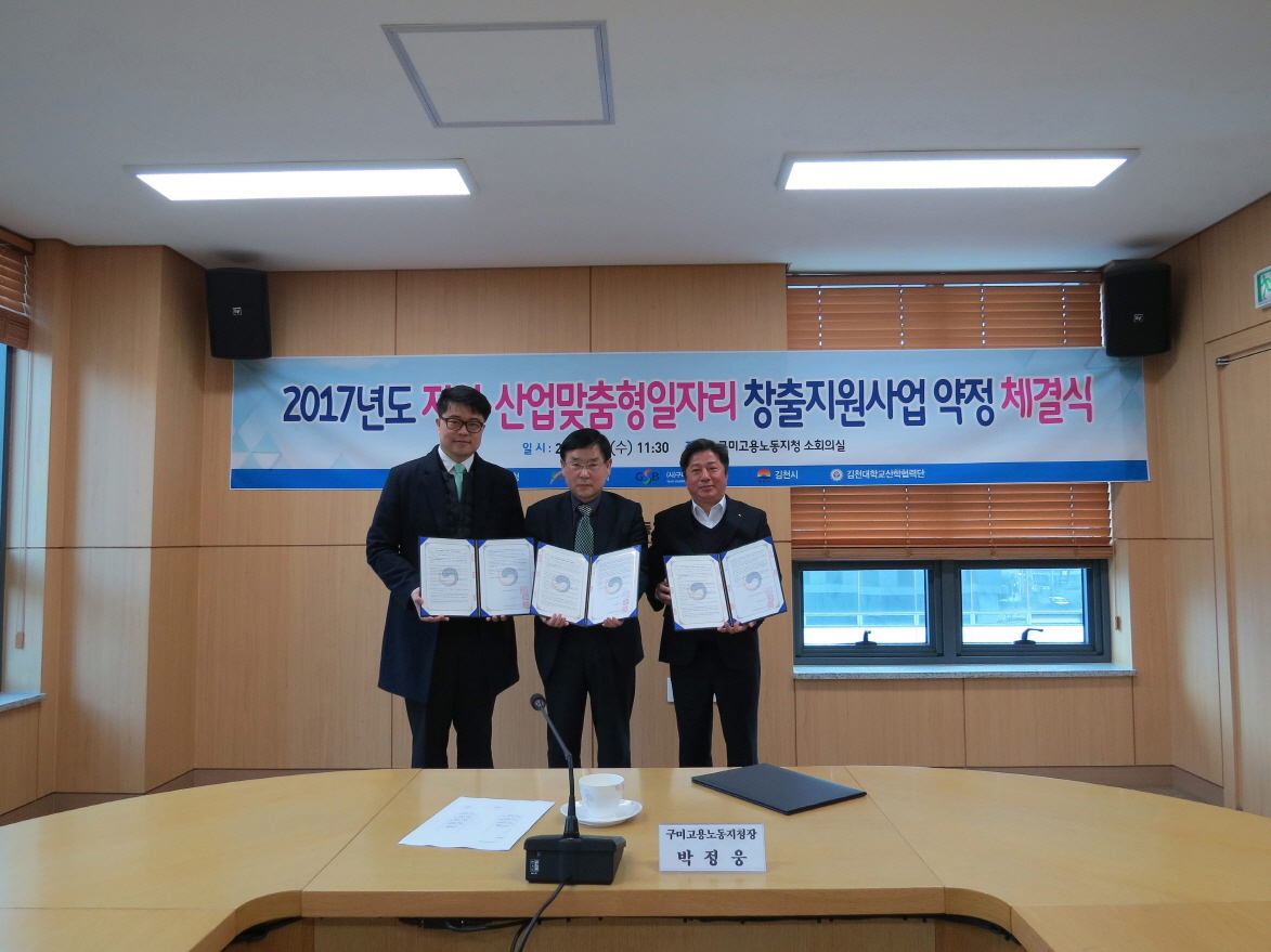 | 김천시는 지난 8일 고용노동부 및 김천대학교와 컨소시엄을 구성하여 “2017년 지역‧산업 맞춤형 일자리창출 지원사업” 업무 협약을 체결하고, 이달부터 본격적인 사업 추진에 들어간다고 밝혔다.