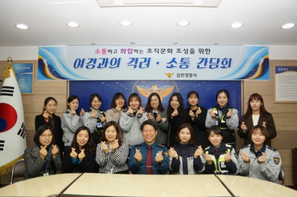 |  | | | ⓒ 김천내일신문 | | 김천경찰서(서장 김영수)은 3월 10일 경찰서 열린방에서 性비위 예방 및 여경 간 소통 활성화를 위한 ‘여경 멘토-멘티 간담회’를 개최하였다.