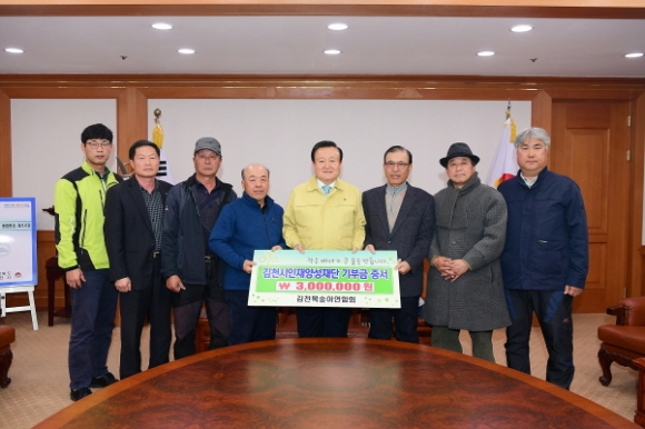 지난 9일 2층 접견실에서 김천시복숭아연합회 최민용 회장과 임원진들은 “지역의 우수한 인재육성과 교육발전에 적극 동참하고자 회원들이 마음을 모아 장학기금 삼백만원을 김천시인재양성재단에 기탁하게 됐다”고 말했다.