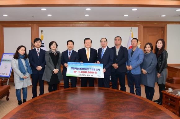 | 김천의 교육발전과 글로벌 인재육성을 위해 김천석천중학교(교장 이각용) 교직원 일동이 김천시인재양성재단(이사장 박보생)에 장학기금 일백만원을 기탁했다.