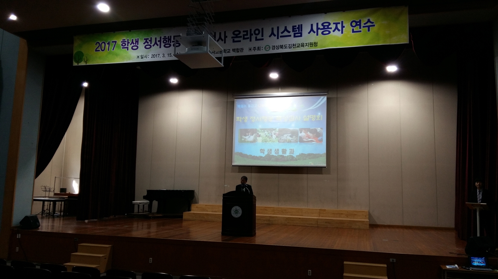 | 경상북도김천교육지원청(교육장 장태덕)은 학생들의 건강한 성장·발달 지원을 위하여 2017년 3월 15일(수) 성의여자고등학교 백합관에서 초․중․고등학교 교감, 초등학교 1·4학년 담임교사, 중·고등학교 1학년 담임교사, 업무 담당자 등 320여 명을 대상으로 “2017 학생 정서·행동 특성검사 설명회”를 개최하였다.