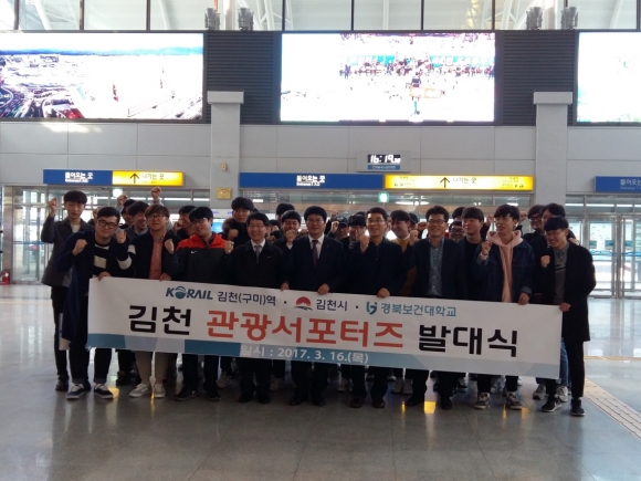 | 김천시는 코레일 김천(구미)역, 경북보건대학교와 함께 지난 3월 16일 김천시 대학생 관광서포터즈 발대식을 개최하였다.