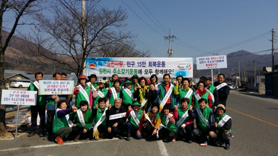 3월 16일 오전 면사무소 직원 10명과 새마을협의회원 40명은 김천의 밝은 미래를 위한 하나된 마음으로 홍보 현수막과 피켓을 들고 인의리에서 봉산면사무소까지 2㎞정도를 도보로 이동하며 김천시 인구 15만 회복을 위한 가두캠페인을 실시하였다.