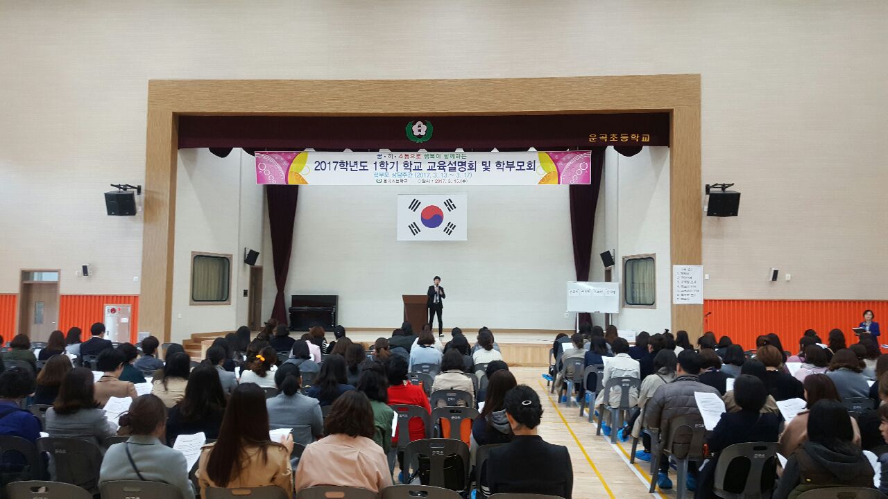 운곡초등학교(교장 이홍락)에서는 2017년 3월 15일(수) 강당에서 222명의 학부모가 참석한 가운데 1학기 학교교육설명회를 실시하였다.