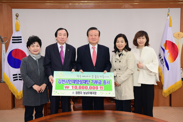 |  | | | ⓒ 김천내일신문 | | 김천의 교육발전을 위해 故 김영택(김천중 수학교사) 故 임명자(중앙,모암 초등학교 교사) 자녀들이 김천시 인재양성재단 (이사장 박보생)에 장학기금 각각 1천만원씩을 2015년12월24일과 지난3월20일에 기탁하였다.