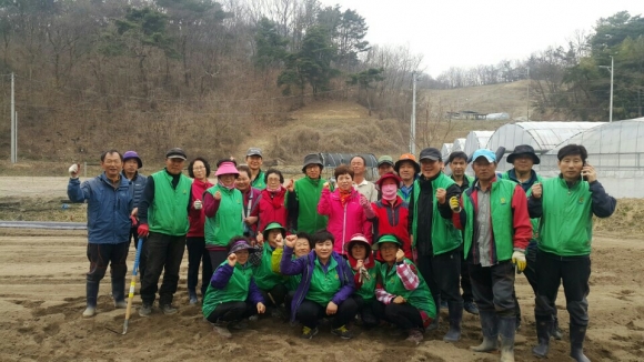 김천시 봉산면 새마을협의회 회원 40명은 20일 아침부터 봉산면 신암리 휴경지에 트랙터를 이용하여 경작지를 정리하고 비료를 뿌린 후 골골마다 정성을 다하여 비닐을 씌우며, 씨감자를 심기위한 1차 작업을 완료하였다.