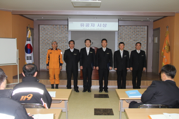 이번 시상에는 아포읍 폐타이어 화재현장에서 신속한 초기대응과 연소확대 방지에 앞장선 공로를 인정받은 정승화 소방사 및 제6회 경상북도 심폐소생술 경연대회 선수단을 2위에 입상시킨 공로를 인정받은 현용재 소방교, 김홍기 소방교가 소방서장상을 수상하게 되었다.