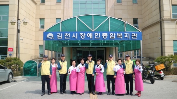 | 김천경찰서(서장 김영수)와 의경 어머니회원(회장 김영순)들과 함께 3월 23일(목) 김천시에서 운영하는 장애인 종합복지관에서 의무경찰과 의경 어미니회 20여명이 참석, 사랑 나눔 봉사활동을 전개했다.