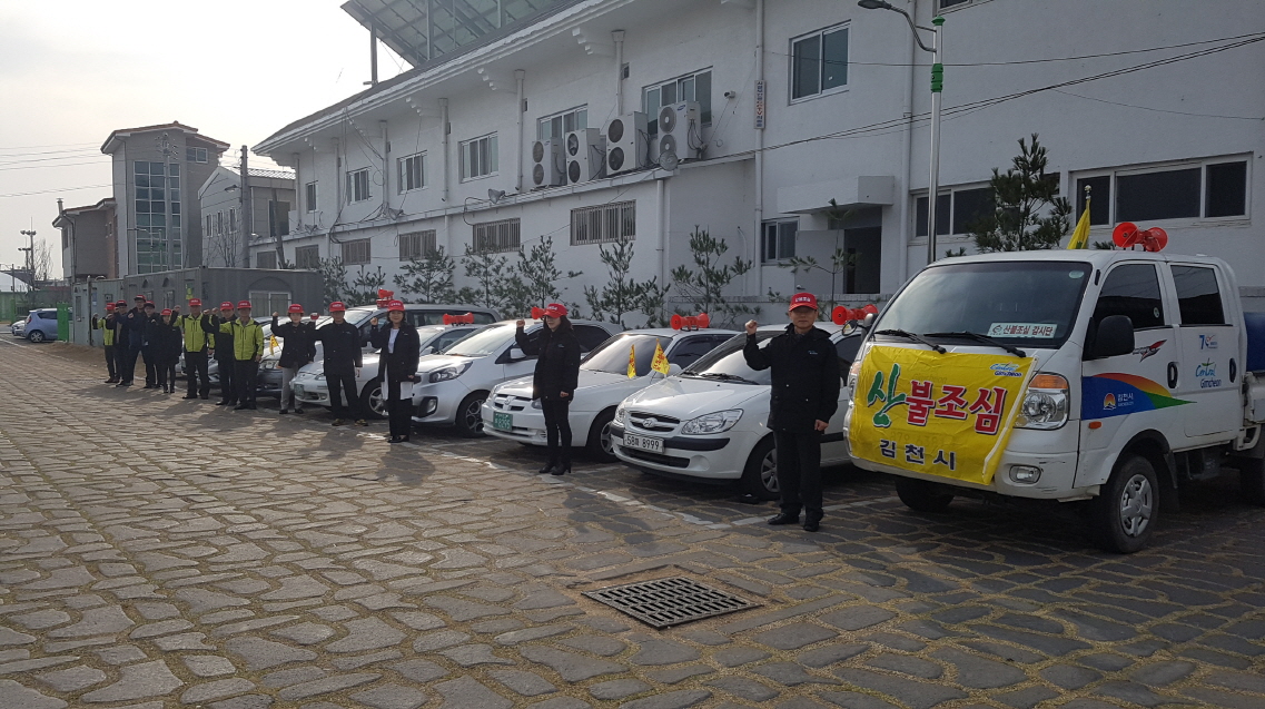 직원들의 차량에 산불깃발과 방송기기를 설치하여, 아포읍 산불 담당부서인 김천시농업기술센터 친환경농업과(과장 구영훈) 및 맑은물사업소(소장 김병진) 직원들과 함께 연일 마을을 순찰하며 계도활동을 펼치고 있다.